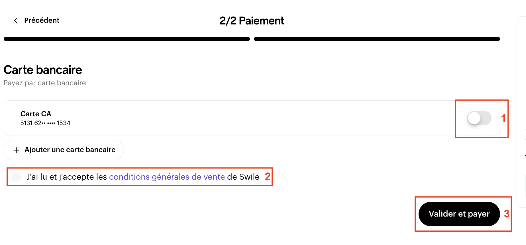 Select your bank card or add one to pay, accept the T&Cs and click Confirm and pay