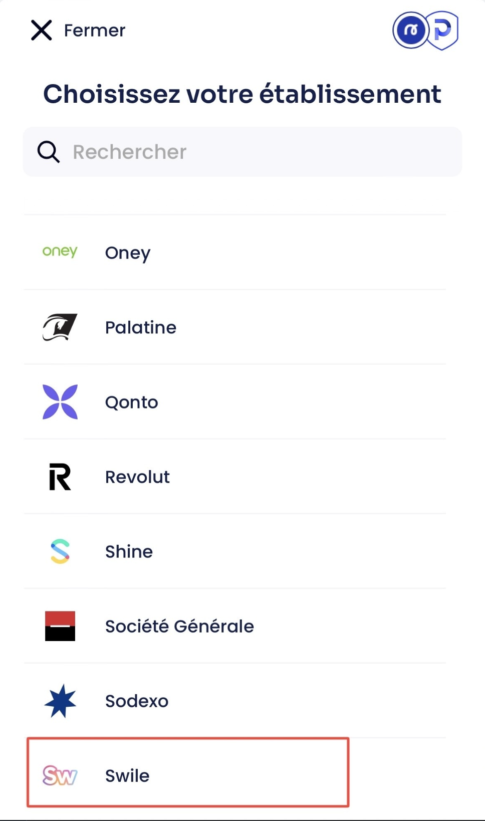 - Enter your Swile login details to complete the link