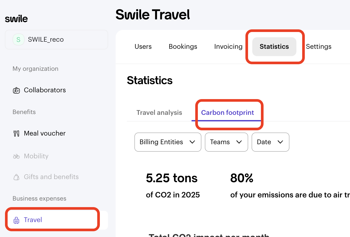 Only a Swile Travel administrator account can access data concerning your organization's carbon impact. This article explains how to find, understand and export them 🚀