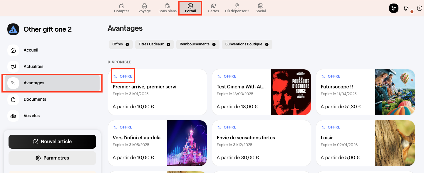 Your Works Council (CSE) can set up personalised offers that you can access directly from your Swile account. This allows you to take advantage of special prices negotiated by your CSE on products such as cinema tickets, theme parks, gift boxes and other items.