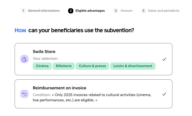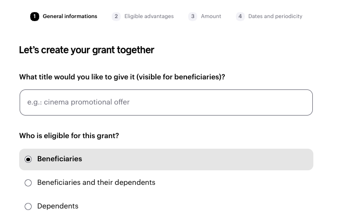 If you’ve subscribed to the Gifts / Works Council offer, choose whether your employees and/or their dependants should benefit from this grant.