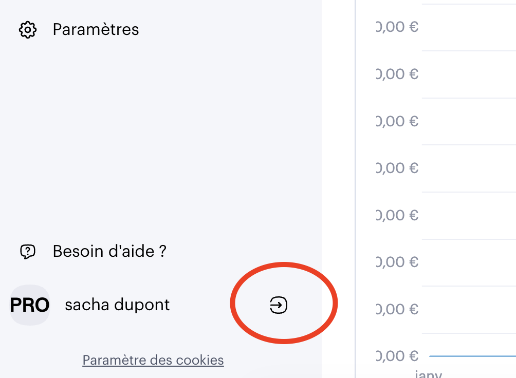 To log out of your Swile affiliate account, click on the arrow next to your name (at the bottom left of your screen).