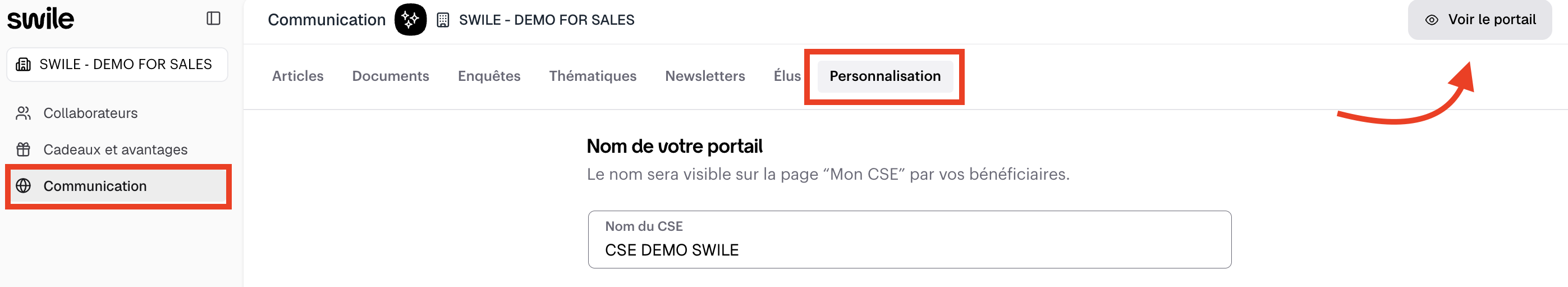 The "View portal" button lets you go straight to the portal and see exactly what your users will see.