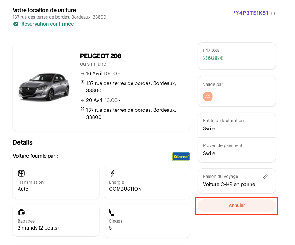 💡 If you're an admin and want to cancel a colleague's booking, go to the Administration tab > Organisation bookings > Active.