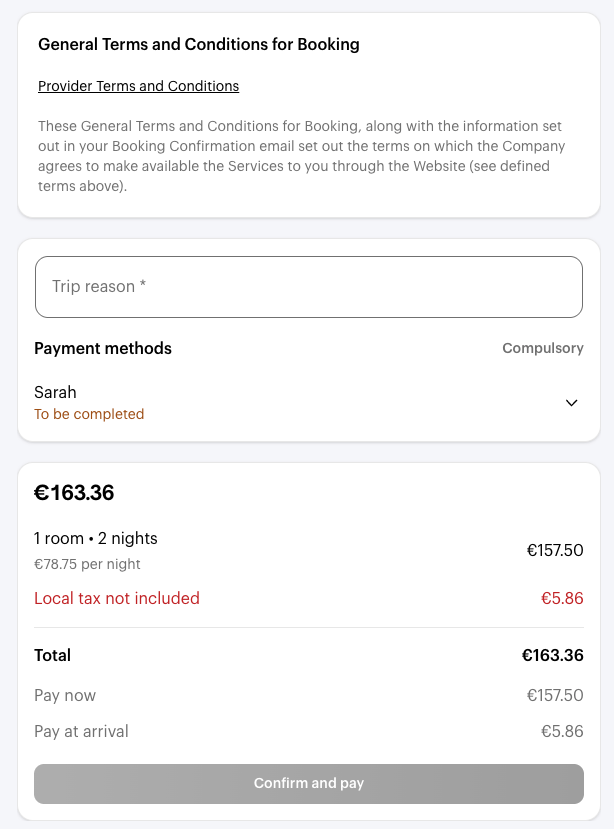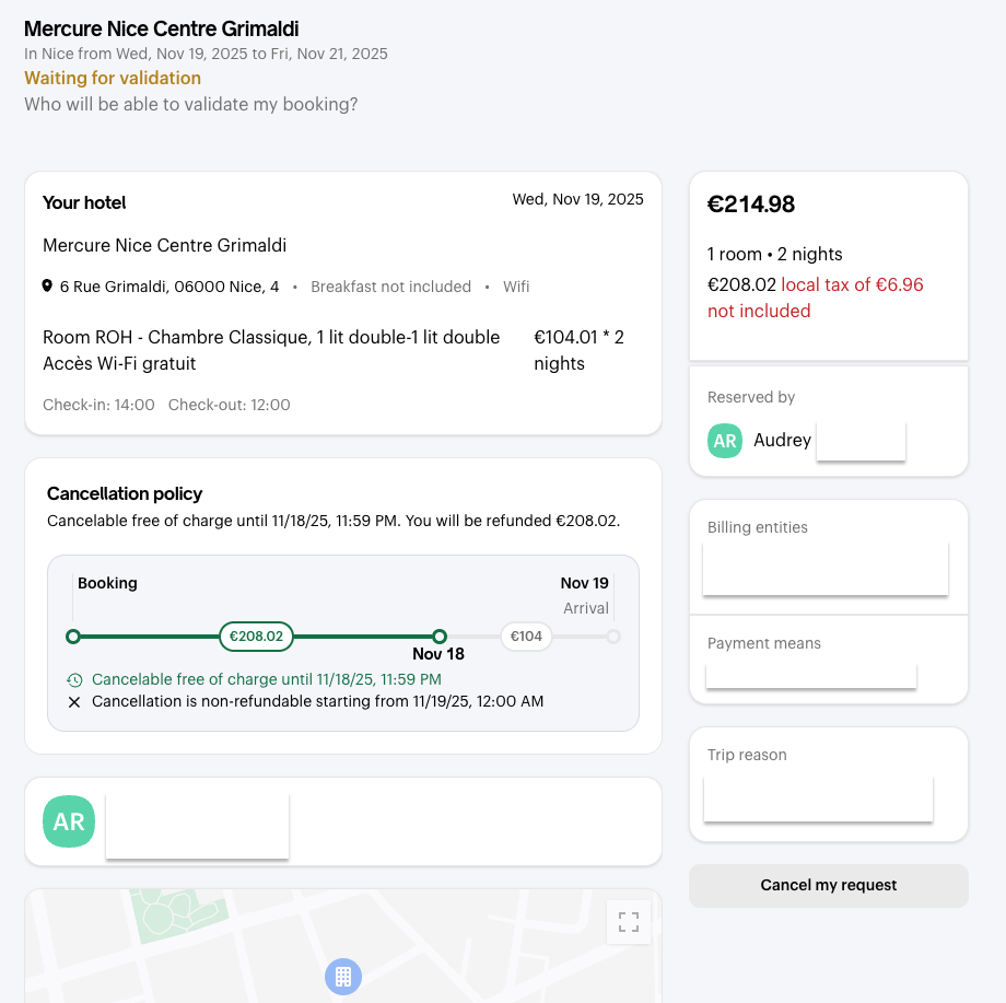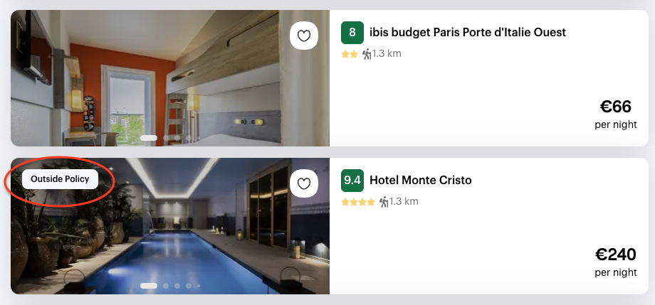 Your company can set up a travel policy by defining rules, including a budget to stick to. If you don't follow these rules, your company may refuse the trip and you'll need to make a new booking.