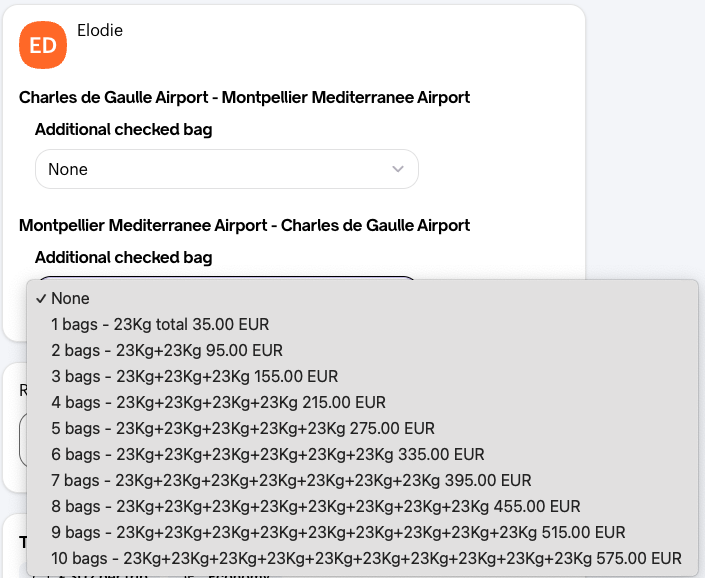 You might already have checked luggage included depending on the option you chose. If you need to add an extra one or if your option doesn't include luggage, you can add it before finalising the booking.