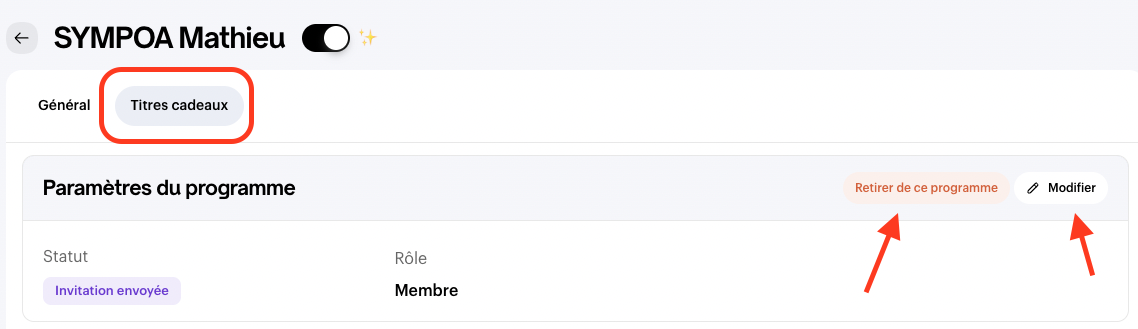- Cliquez sur l'onglet du programme Titres Cadeaux