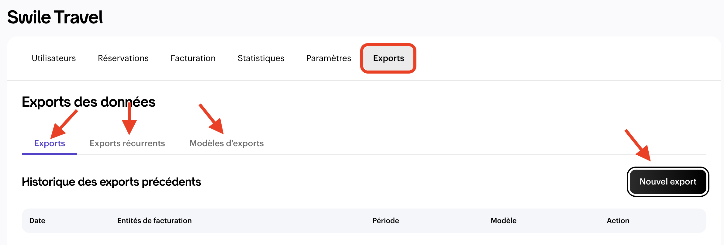 Si vous disposez d'un compte administrateur sur Swile Travel, vous pouvez procéder à un export des réservations depuis votre espace. Pour cela :