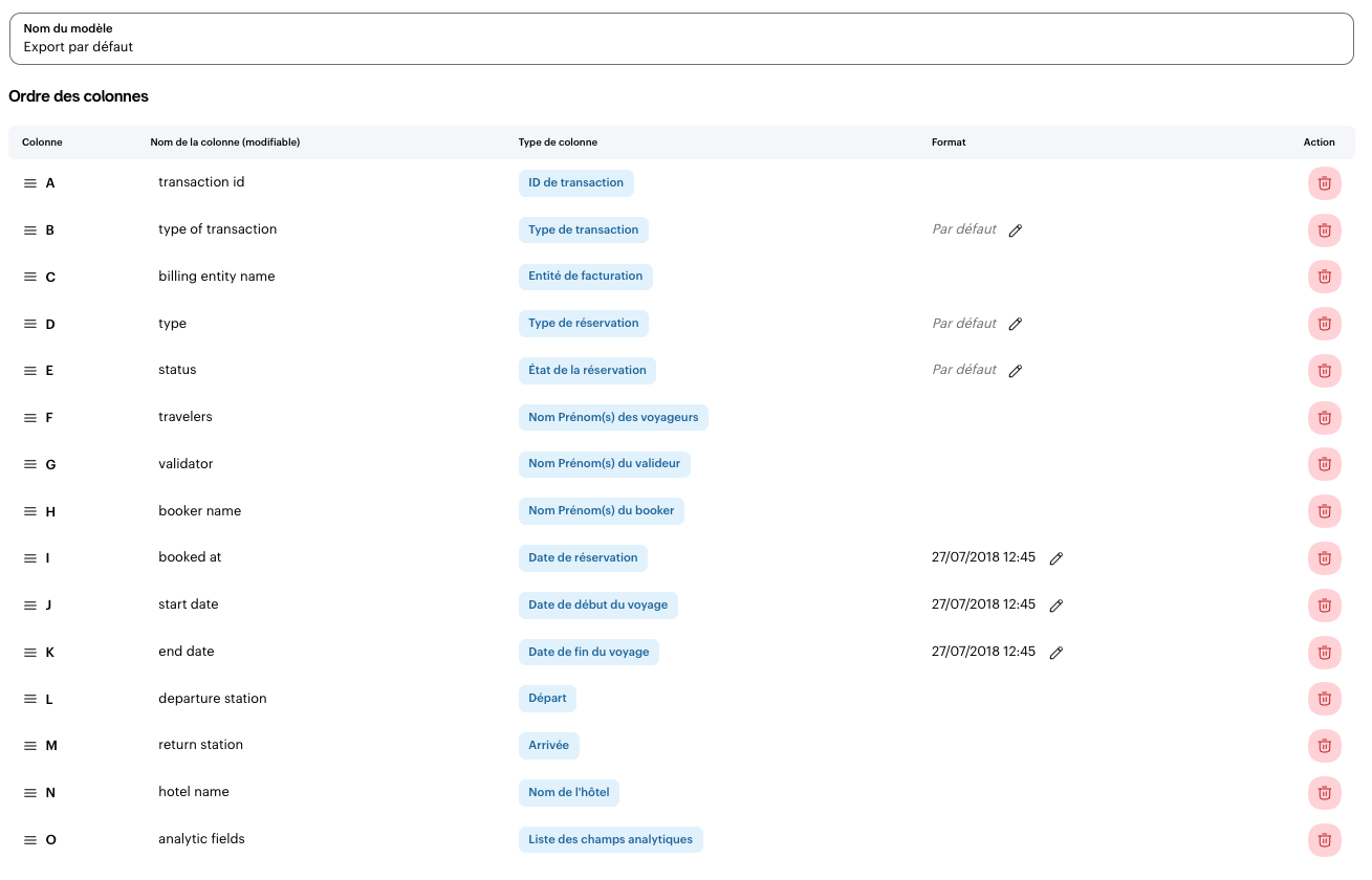 Vous avez la possibilité soit d'utiliser notre modèle d'export par défaut, soit de le personnaliser.