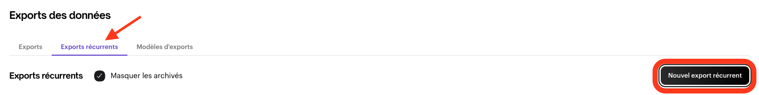 Vous pouvez décider de recevoir de façon récurrente votre export de réservations. Pour cela, allez dans l'onglet Exports récurrents.