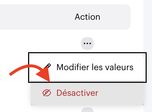 - Cliquez sur les trois petits points au bout de la ligne concernée, puis sur Modifier les valeurs