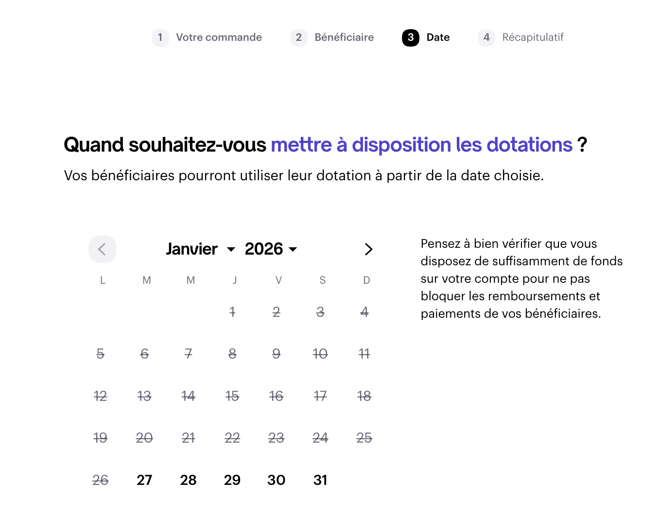 Si vous disposez de la solution de Services à la personne, vous pouvez créditer vos collaborateurs directement depuis votre interface administrateur Swile. Voici les règles et étapes clés.
