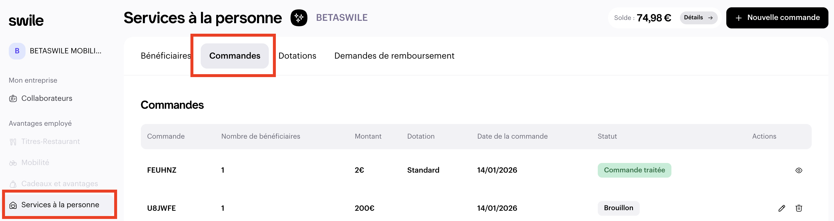 👩💻 Un menu qui centralise toutes vos commandes Services à la personne