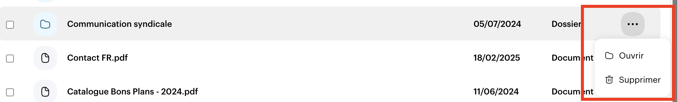 Sur un dossier : l'ouvrir pour le modifier ou y ajouter des documents, ou le supprimer.