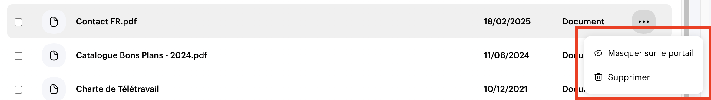 En cliquant sur … en bout de ligne, vous pouvez gérer chaque élément :
