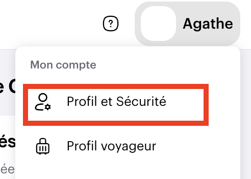 - Cliquez sur vos initiales ou votre prénom en haut à droite