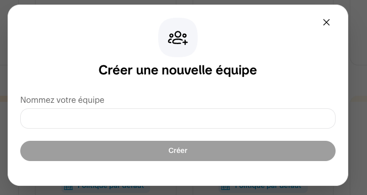 - Cliquez sur Nouvelle équipe