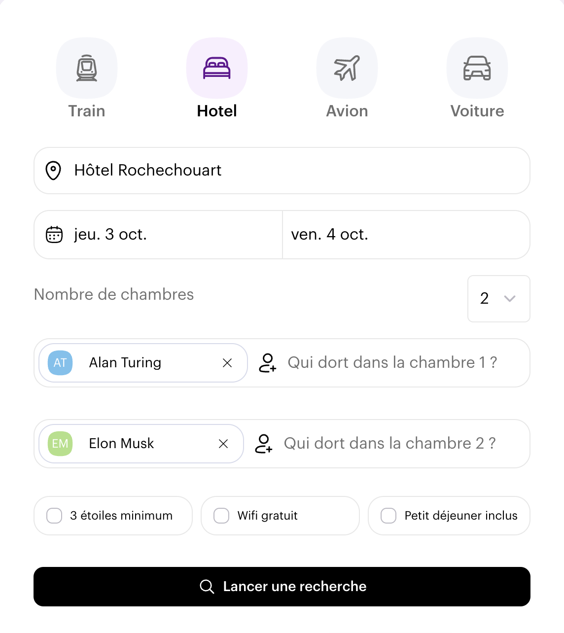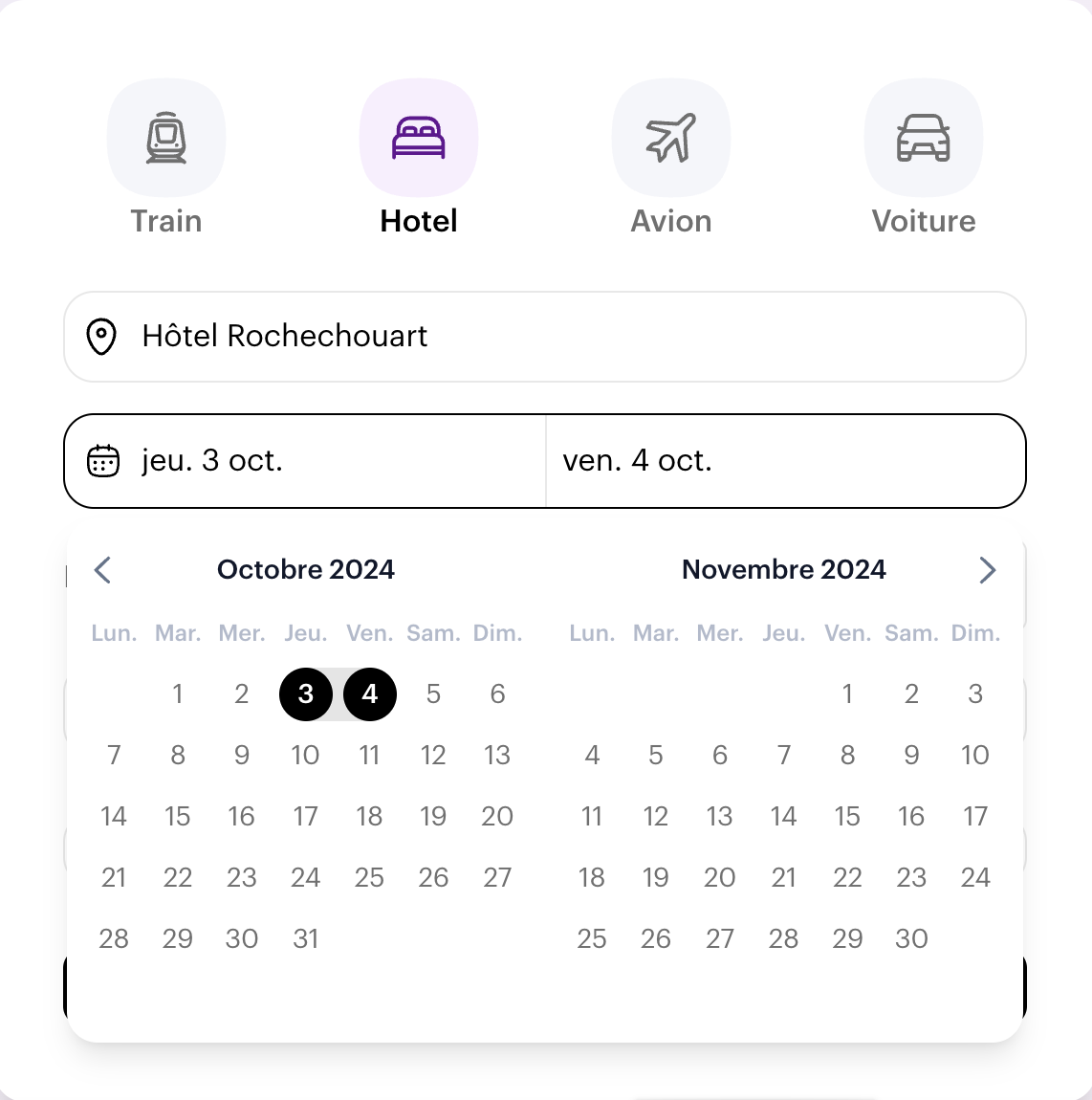 📌 ATTENTION : il faut cliquer dans la liste pour renseigner l'hôtel ou la localisation, sinon la recherche ne marchera pas.