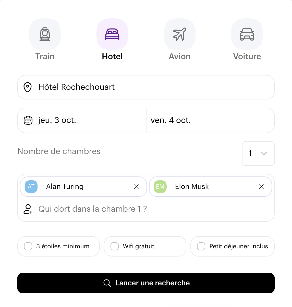 Si vous souhaitez filtrer votre réservation en amont, n'hésitez pas à cocher une des options proposées : hôtel 3 étoiles minimum, Wifi gratuit ou encore petit-déjeuner inclus.