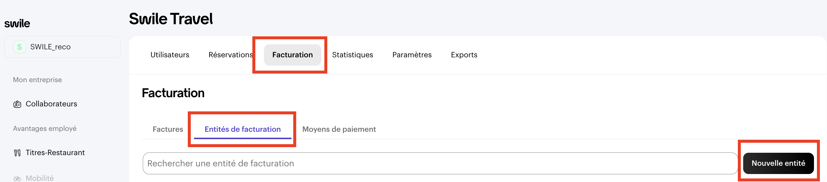 Créer, modifier ou supprimer une entité de facturation sur Swile Travel